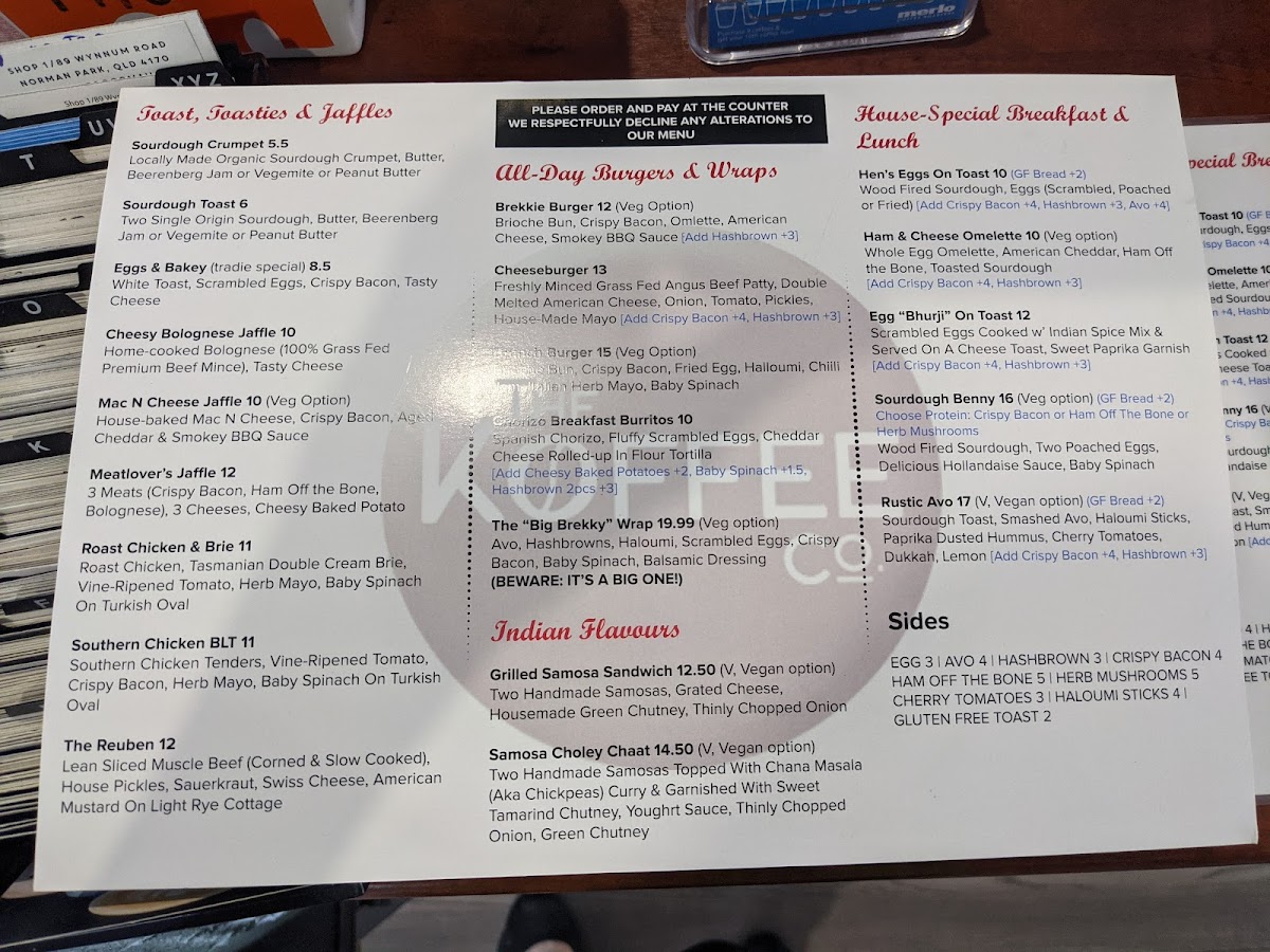 Welcome to The Koffee Co, a cozy café tucked away at 1/89 Wynnum Rd, Norman Park, offering a delightful fusion of beverages and delicious meals. Their menu shines especially with enticing options in smoothies, coffees, and hearty breakfast and lunch dishes.